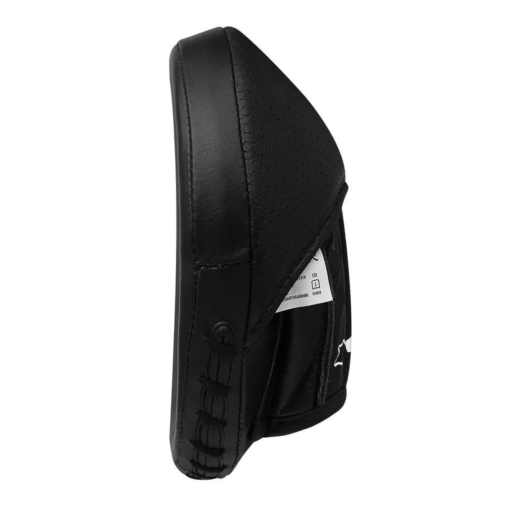 耐久性に優れた本革と衝撃を吸収するマルチレイヤーフォームを使用した、コンパクトなディスク型パンチングミットです。トレーナーの手のひらに打ち込むように、ナックルをしっかり当てるパンチの精度向上に適しています。軽量で長時間のミットワークでも負担が少ないモデルです。カラー:ブラック
