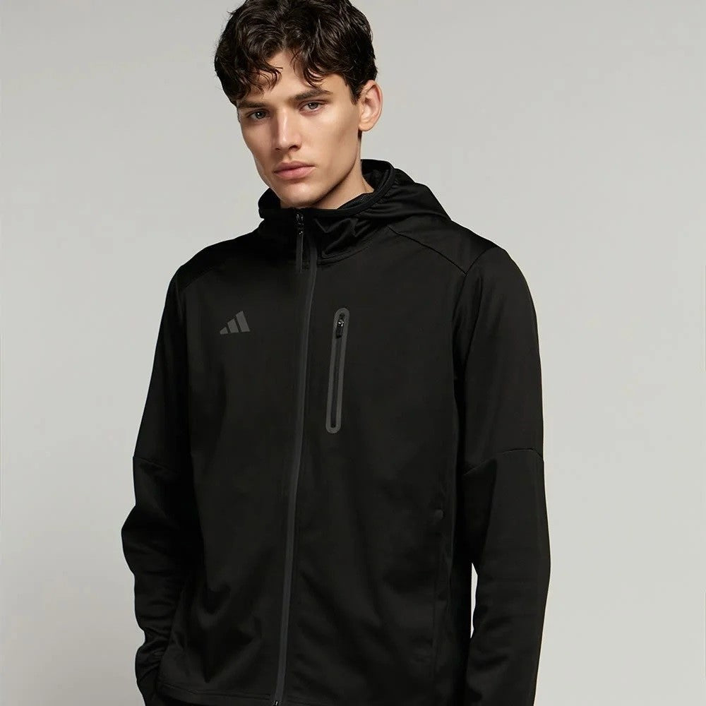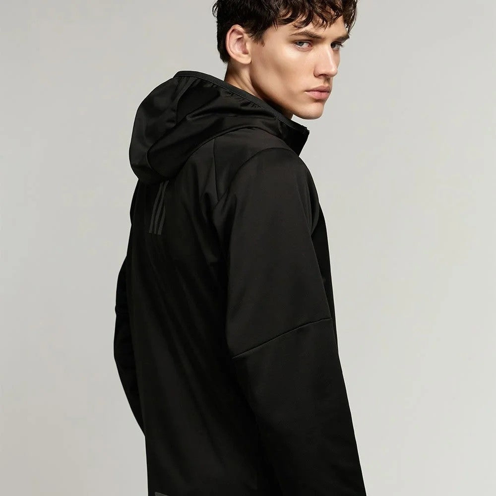アディダスロゴと3本ラインには夜間のスポーツにも安心な反射プリントを使用