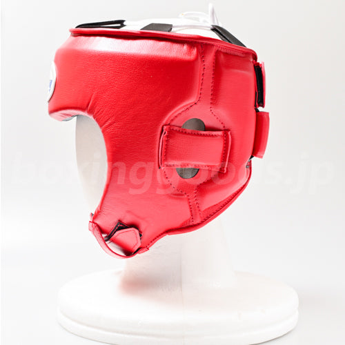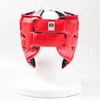 日本ボクシング連盟公認のアマチュア試合用ヘッドギア。アゴベルト、後頭部マジックテープ式。カラー:レッド