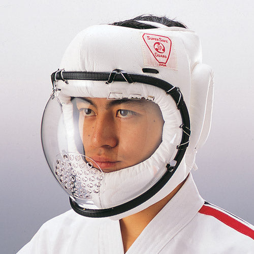 最高の耐久性と透明性にも優れたポリカードネイトを使用し、視界を確保しつつ顔面を保護します。防具付き空手をはじめ、少林寺拳法、テコンドー等に。カラー:ホワイト